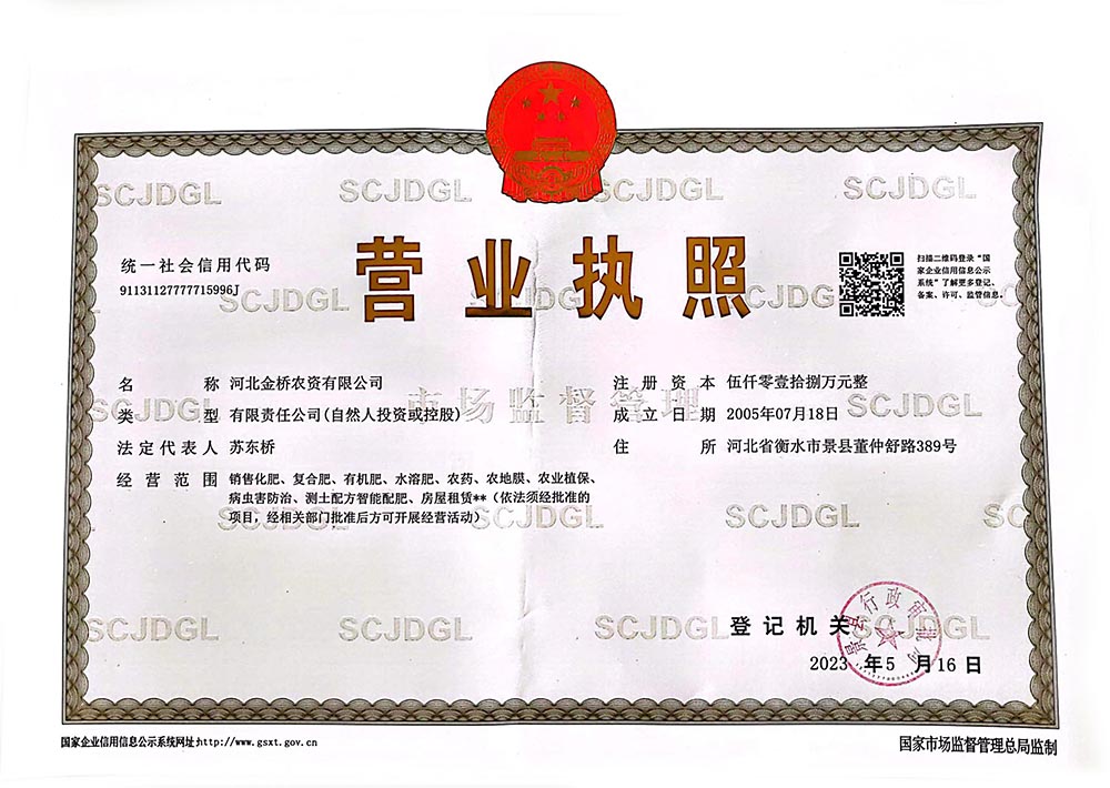 河北金橋農資有限公司是景縣供銷社下屬的股份制企業,公司注冊資金5018萬元,倉儲面積15萬平方米。經營范圍:化肥、農藥、農地膜、無人機銷售、維修、無人機飛手培訓及飛防作業,測土配方智能配肥等業務。公司下設景州、吳橋、王瞳、龍華、滄州、衡水、河間等九個農資配送中心,二個化肥經營部......